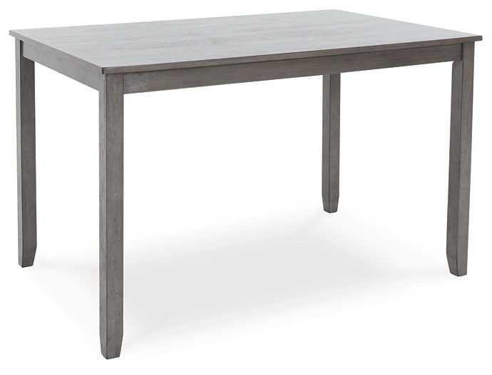Perfect portion. Striking a simply chic pose, this counter height dining set is crafted with fascinating flair. A subtle gray wash finish gives the clean-lined design a casually cool sensibility. Plushly cushioned seats in a soft, neutral upholstery add to the allure. During casual get-togethers, daily dinners and family game nights alike, this set serves up stylish function.