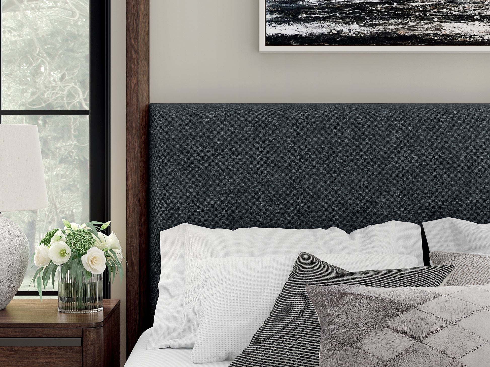 Details | Includes canopy, upholstered headboard, footboard, rails, posts and slats, Made with hardwood solids, mango wood veneer and MDF substrates , Side rails feature laminated solid hardwood slat support rails (or LVL) with glued and screwed blocking for added strength, Complex, rich dark brown finish, Foam headboard cushion with polyester upholstery , Measure room, including ceiling height, to ensure bed clears fans and light fixtures, Foundation/box spring required, sold separately , Mattress available, sold separately , USB-A and USB-C charging ports, Power cord included; UL Listed, Assembly required | |