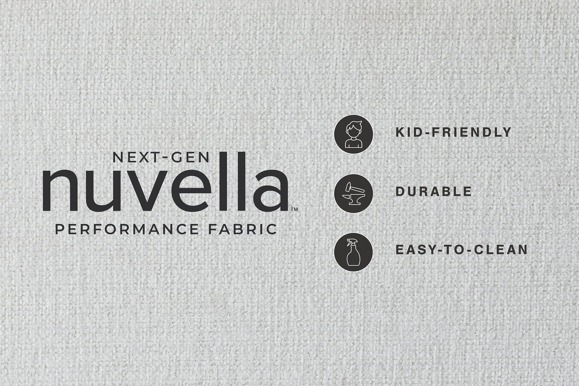 Includes upholstered headboard, footboard, bunkie board and rails, Foundation features nested bunkie boards with non-woven fabric for a snag-free mattress surface, Made with engineered wood frames, solid wood blocking, foam and fabric, Side rails feature laminated solid hardwood slat support rails (or LVL) with glued and screwed blocking for added strength, Polyester upholstery, Next-Gen Nuvella™ is a performance fabric that is soft, easy to clean, stain-resistant and durable, Clean fabric with mild soap and water, let air dry; for stubborn stains, use a solution of 4 oz. bleach to 28 oz. water, Bed does not require a foundation/box spring; accommodates most zero clearance adjustable bases, Mattress available, sold separately, Assembly required