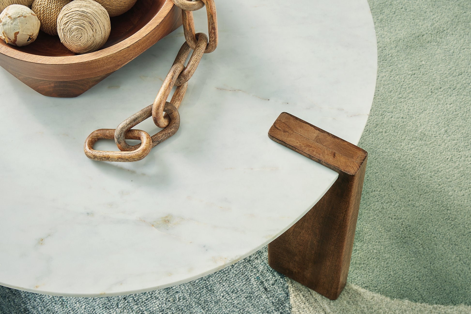 With its back-to-nature sensibility, the Isanti coffee table is a natural fit for outfitting your modern living area. Its clean-lined design lets the beautifully organic quality of the mango wood shine through, complemented by the sleek refinement of a marble top. This table is the ideal spot for snacks, beverages and that stack of unread books.
