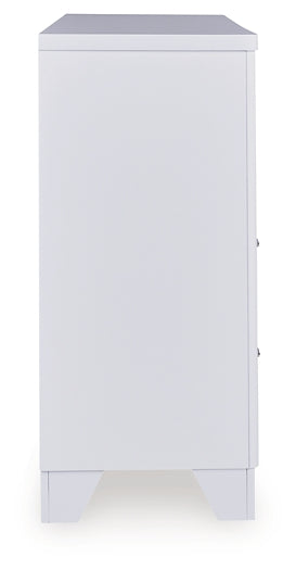 Details Made with hardwood solids and MDF substrates, White paint finish, Inset acrylic glitter accents, Horizontal metal drawer pulls, 6 drawers with fully finished interiors, dovetail construction and heavy duty ball-bearing side glides, Textured drawer fronts