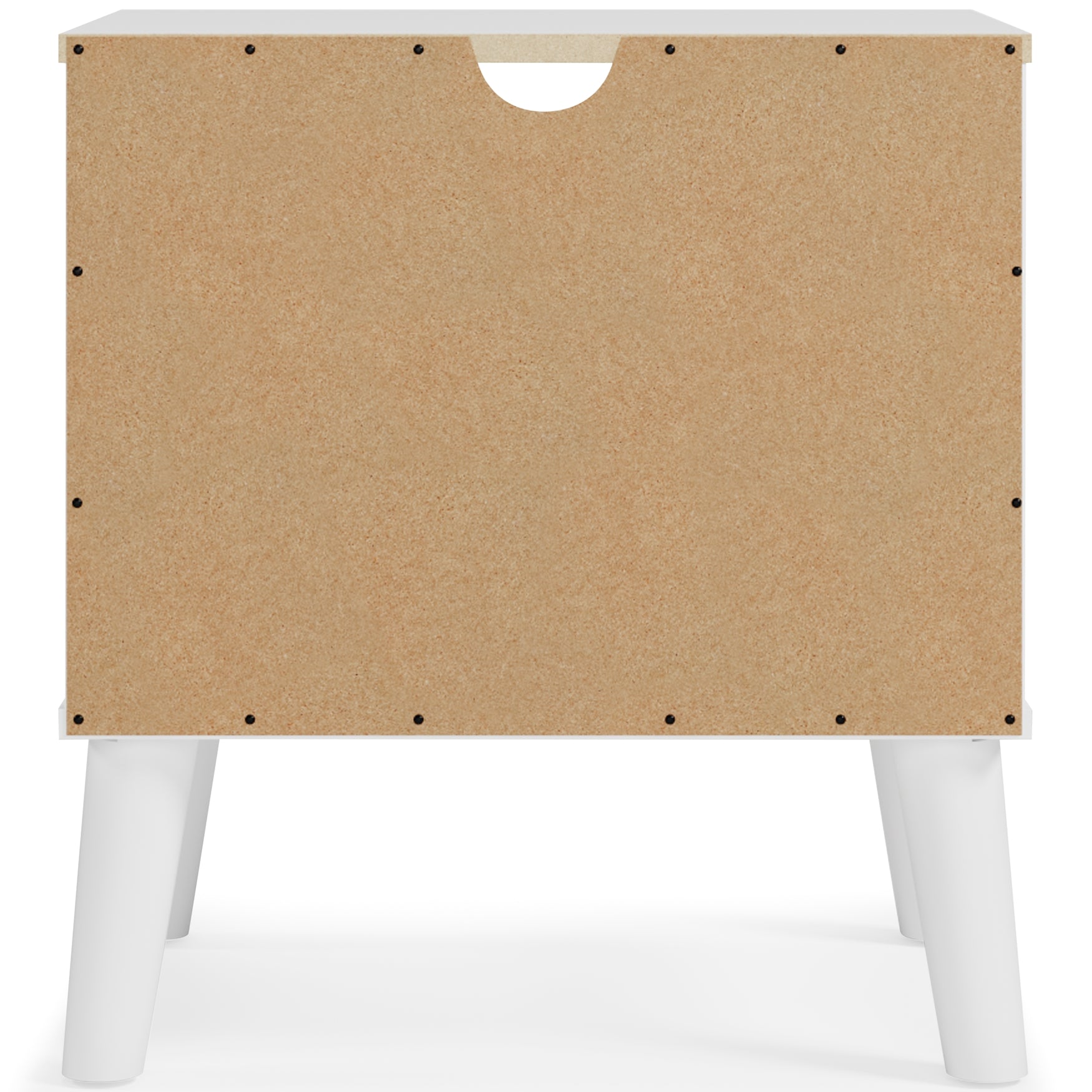 The perfect marriage of contemporary and casual style, this nightstand is a charming addition to your home. It's expressive with a two-tone look in a solid matte white finish and a replicated sugarberry wood grain pattern. White knobs and splay legs add a finishing touch, while the open shelving allows for extra storage.